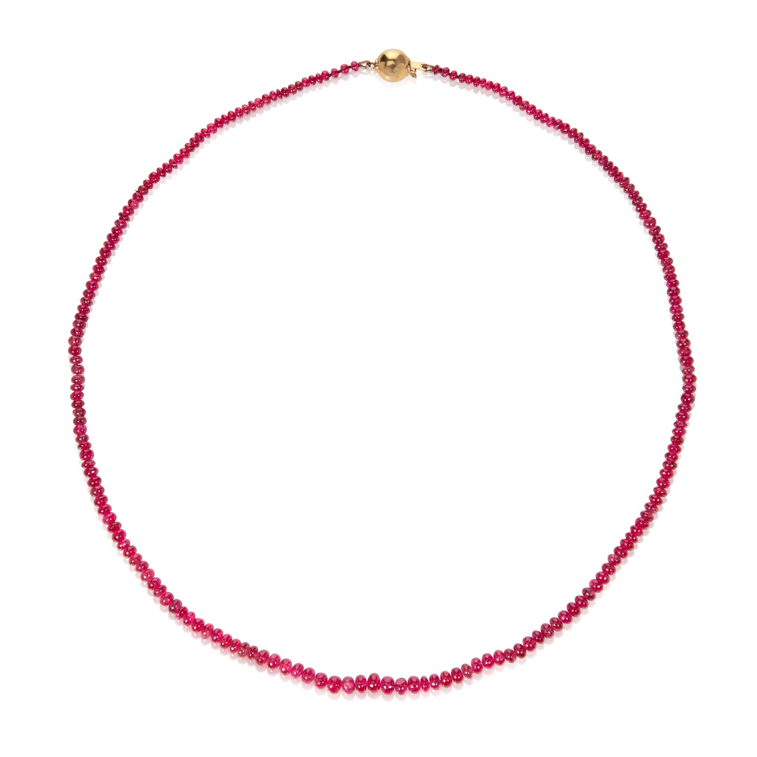 A sweet necklace of pink spinel beads in gently graduating sizes.